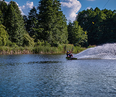 dla korzystających klientów z naszego wake parku oferujemy wyciąg dwusłupowy firmy PRIMUS o długości 185m.