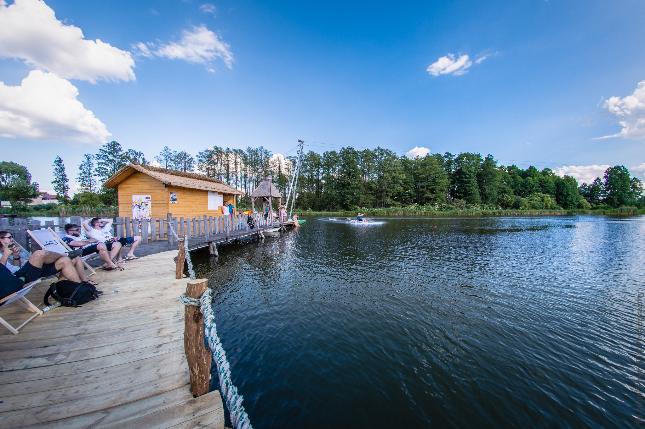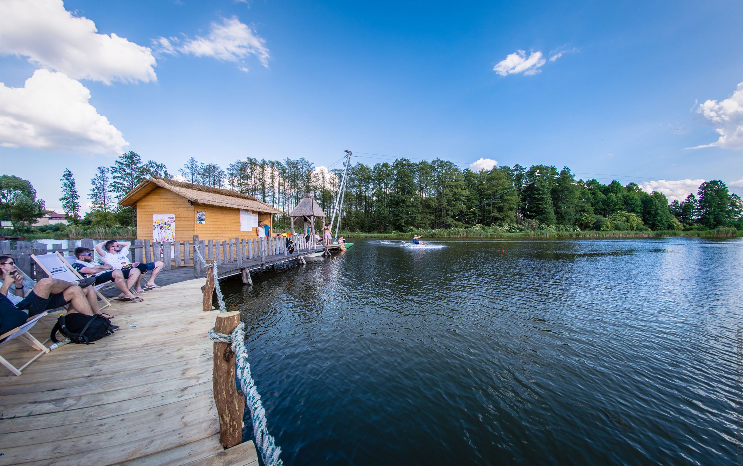 Zobacz więcejdla korzystających klientów z naszego wake parku oferujemy wyciąg dwusłupowy firmy PRIMUS o długości 185m. Na naszym torze znajduje się przeszkoda kicker o wysokości 1.40m posiadamy deski wakeboardowe marki Nobile. Do wypożyczenia są również kaski, kamizelki i pianki oraz dmuchana deska SUPair wraz z wiosłem. Posiadamy także taras z leżakami do wypoczynku ze strefą relaksu.